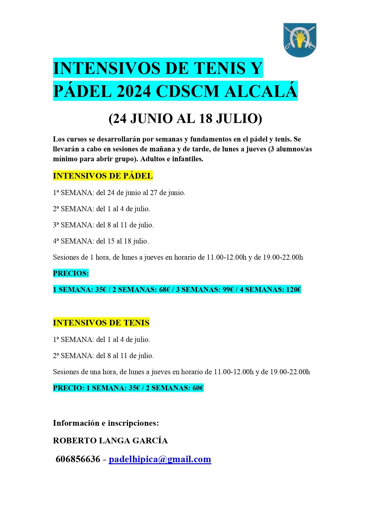 INTENSIVOS PÁDEL Y TENIS 2024 CDSCM ALCALÁ